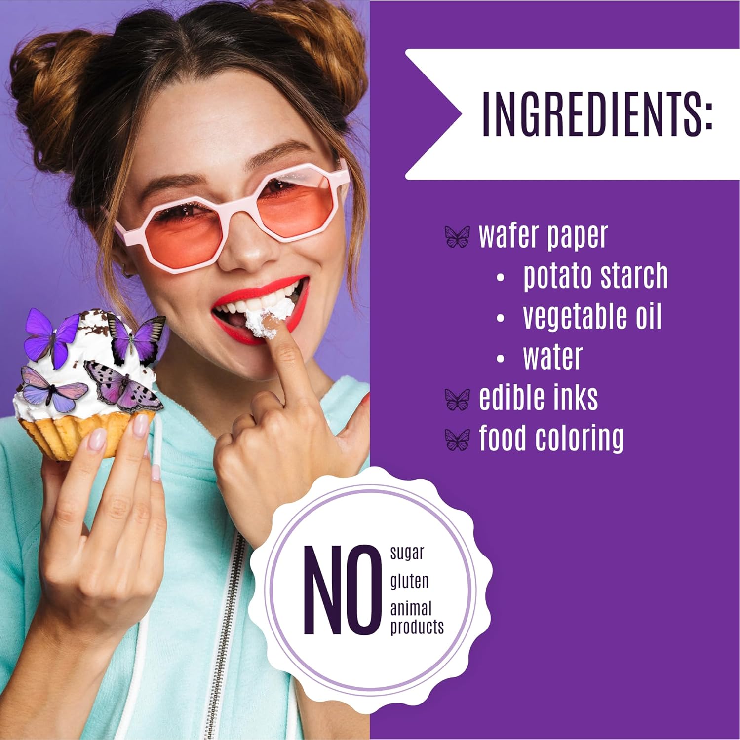These 24 assorted purple butterfly decorations aren’t just stunning — they’re fully edible! Made with high-quality, food-safe ingredients, they add a magical, delicate touch to your cakes, cupcakes, and desserts.