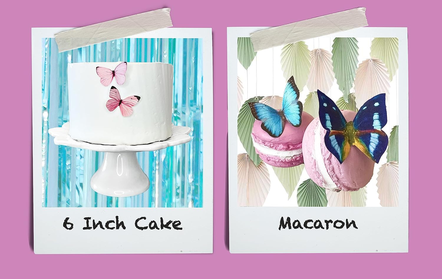 Use regular frosting or corn syrup to adhere these butterflies to cakes, cupcakes, cookies, wine glasses, or serving dishes. Fold the wings gently on either side of the body to create a fluttering, 3D effect that brings your creations to life.