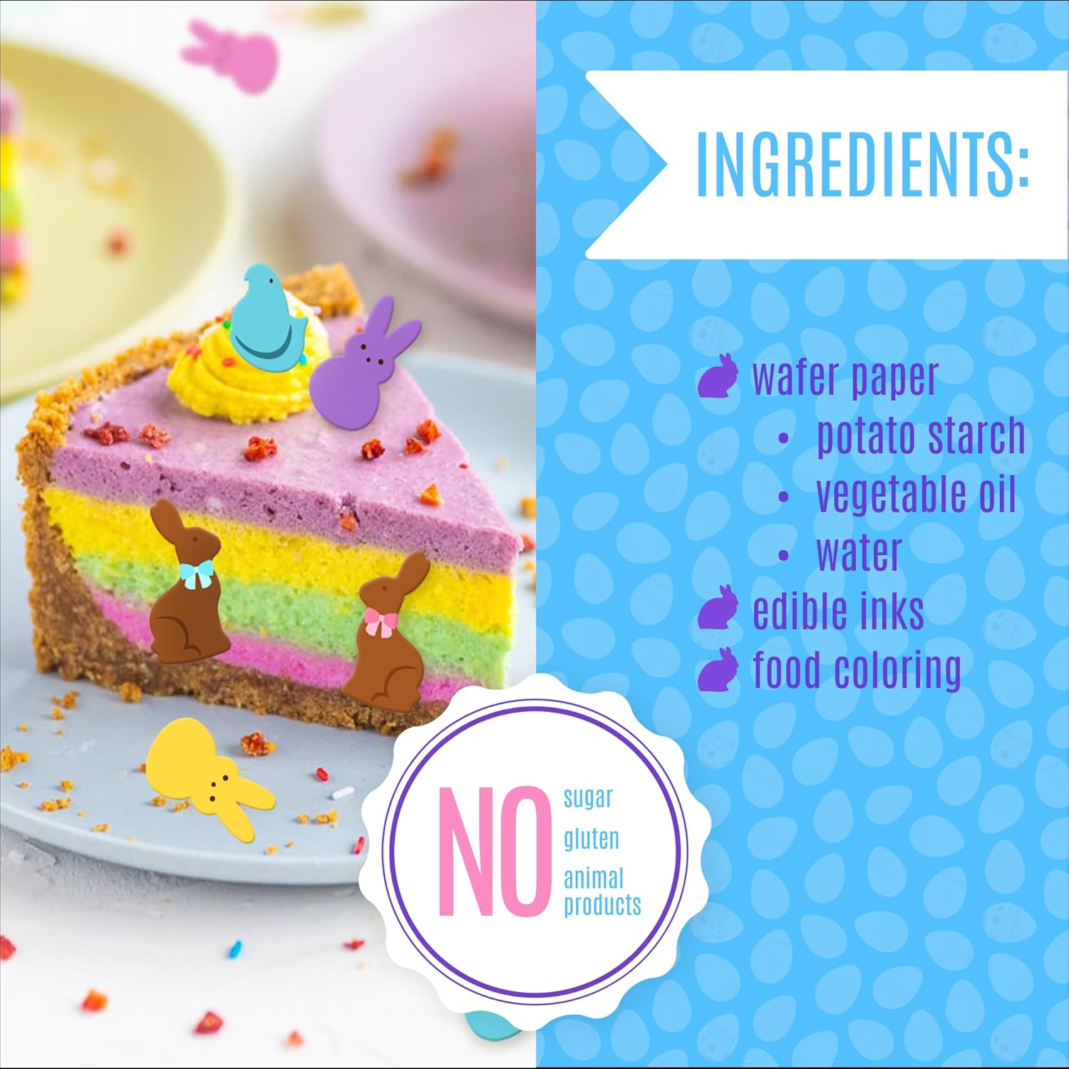Bring charm to your Easter treats with these handcrafted edible cupcake toppers from Sugar Robot! Featuring adorable bunnies and chicks, each piece is made in the USA from high-quality wafer paper (potato starch, vegetable oil, water) and food coloring.