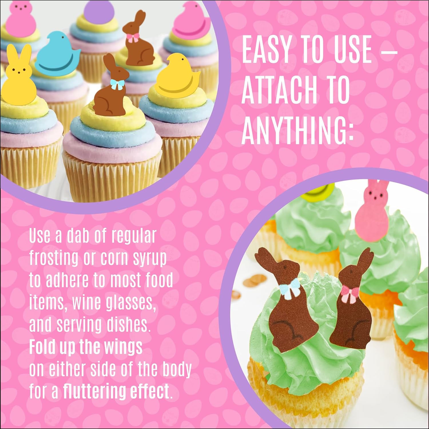 These toppers are perfect for cakes, cupcakes, cookies, and other baked goods. Simply apply with frosting or corn syrup. Wings and shapes can be gently folded for a fun 3D effect. Each topper is pre-cut, brushed with vanilla, and sealed for freshness.